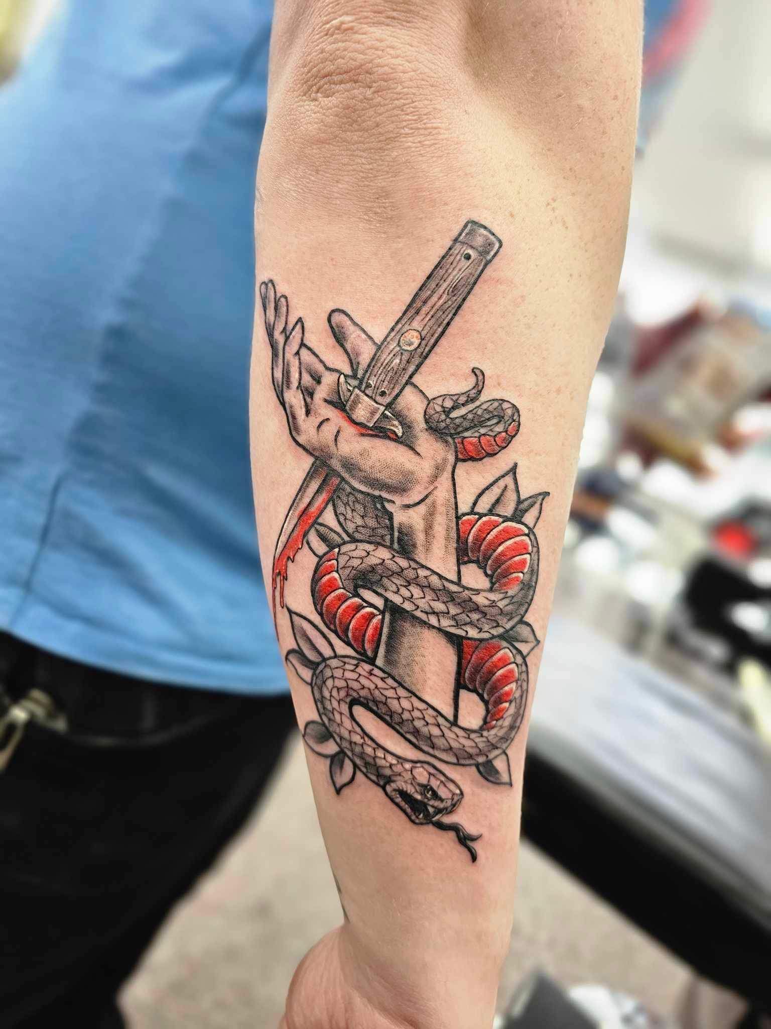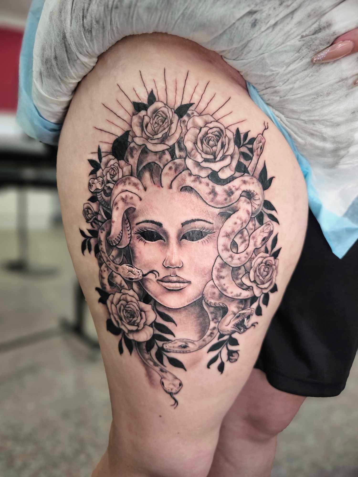 This page highlights some of our artists’ greatest works. Browse through our variety of styles, from modern to traditional designs. Whether you like it simple and straightforward or big and striking, our tattooists are always inspired! We can create whatever you have in mind or design a tattoo from scratch.